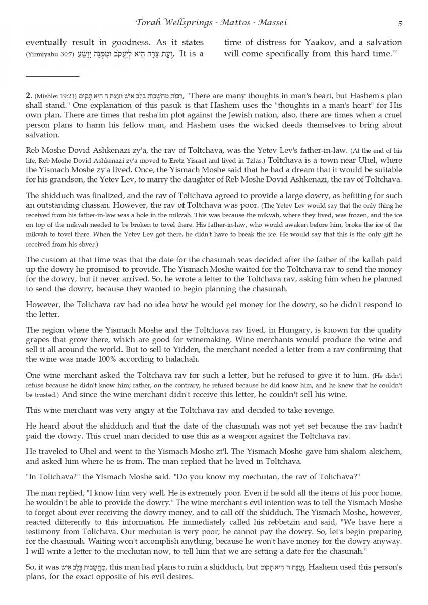 The weekly collected thoughts on the week's parsha from Rabbi Elimelech Biderman Shlita