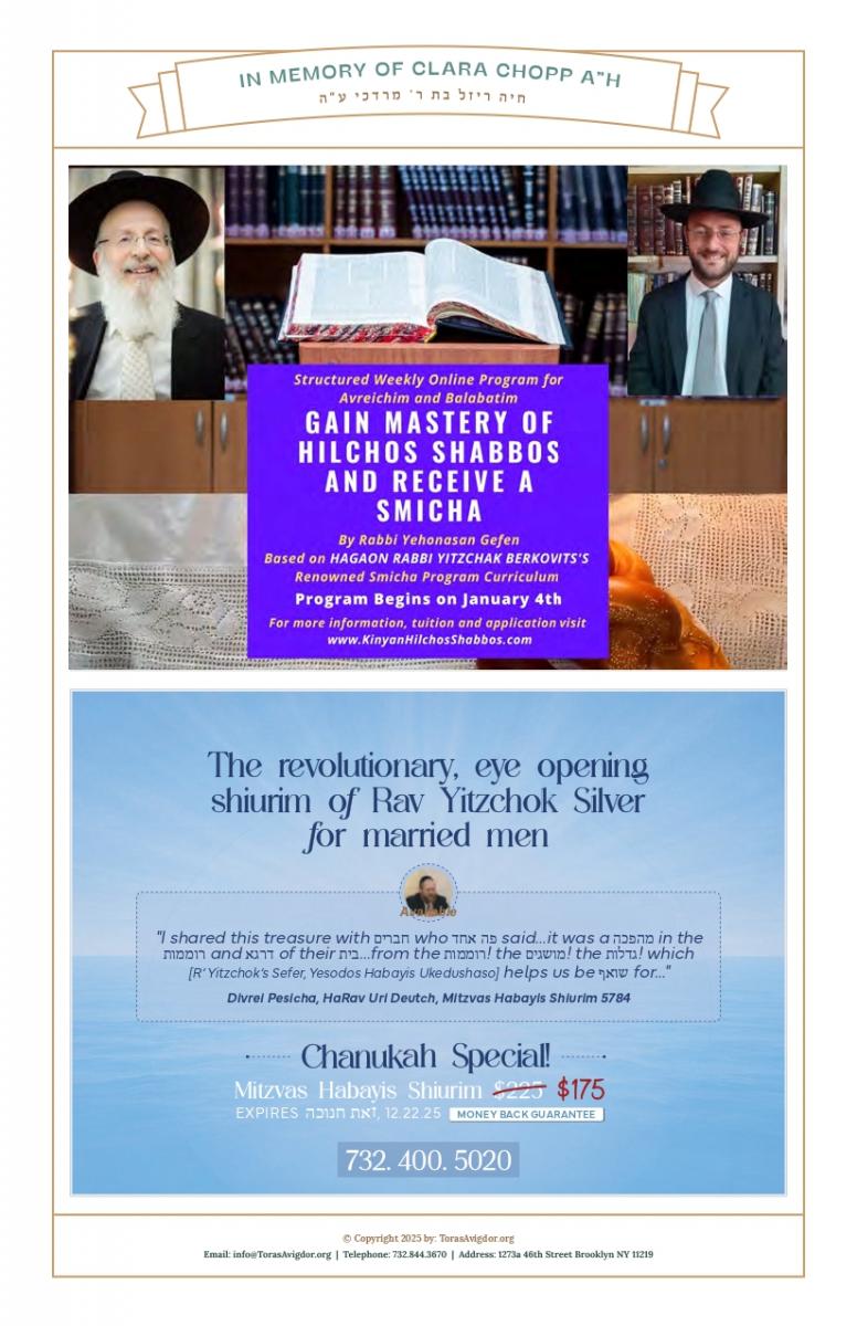 Toras Avigdor was founded with the goal of spreading Rav Miller’s Torah and Hashkafos.