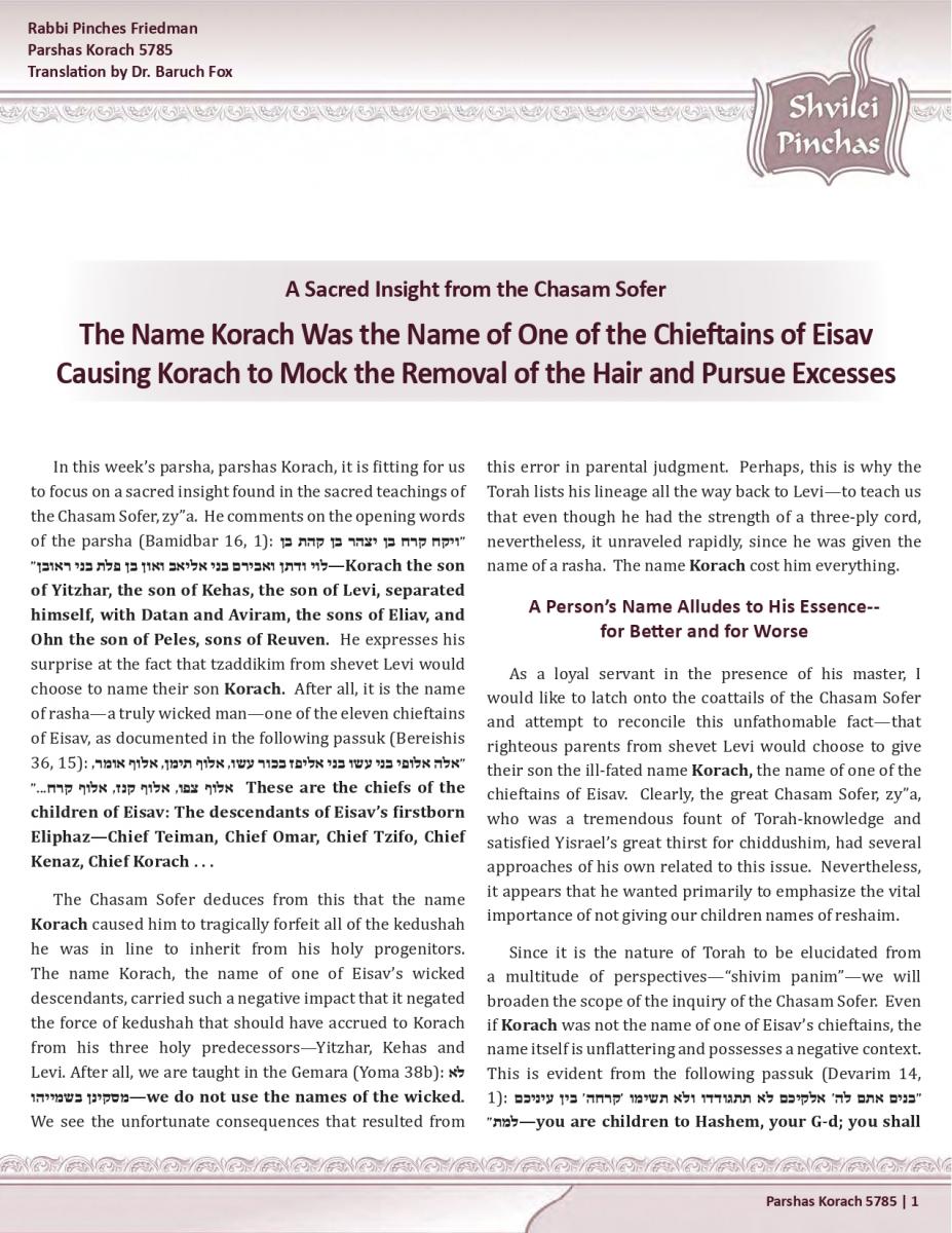 The Name Korach Was the Name of One of the Chieftains of Eisav