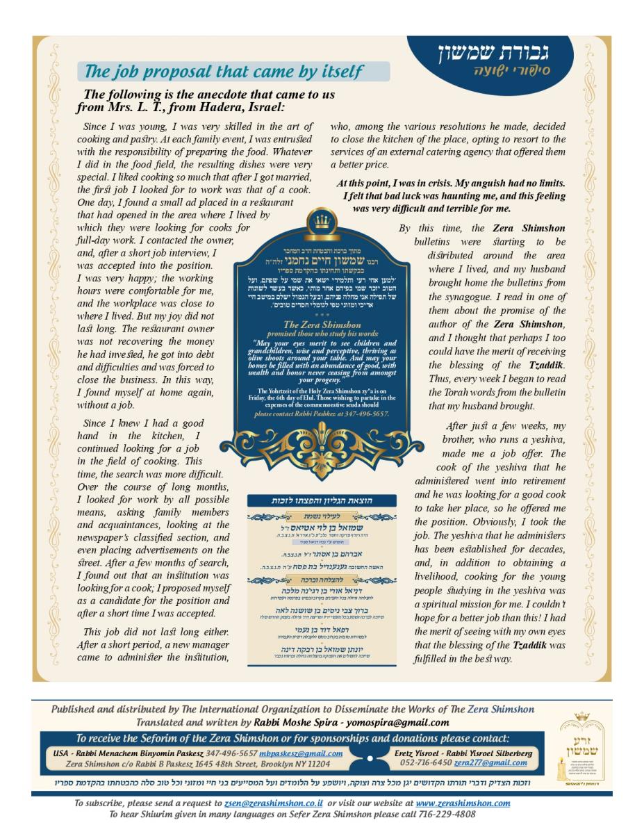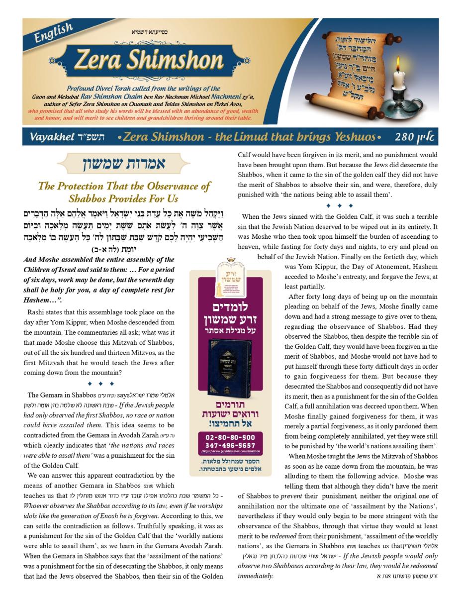 Zera Shimshon - Rabbi Shimshon Chaim ben Rabbi Nachman Michal Nachmani, was a Rabbi of four large communities throughout Italy and in his end of life in the city Reggio Emilia. Rabbi Shimshon Chaim 'Niftar' in the year 1779 in the city Reggio in Itlay. During his funeral, there were many words of praise, not just in his erudition of Torah, but on his love for the Jewish people. The communities in Italy and abroad considered Rabbi Shimshon Chaim their Rebby. Major Rabbis in his generation, wrote amazing things in his honor and wisdom. Including One of the outstanding rabbis figures the 'Hida' (Rabbi Haim Yosef David Azulai ben Rabbi Rephael Yitzhak Zerachia) had testify on Rabbi Shimshon Chaim praise in 'Kedushah' and wisdom and also knowledge in studying 'Kabala' and practical 'Kabala'. Rabbi Shimshon Chaim lived in 'Or ha-Ḥayyim' 'Hakadosh' (Rabbi Chaim ben Atar ben Rabbi Moshe) era, and was in friendship with him. Rabbi Shimshon Chaim had only one child, a son, who died at a young age. Upon this Rabbi Shimshon Chaim decided to dedicate his 'Sefarim' to the memory of this child who had no continuity of a family. In the beginning of his book Rabbi Shimshon Chaim wrote that he need to leave some memory in this world because he has no continuity. And that’s why he wrote the book and named it: "Zera Shimshon", means the Seed of Shimshon. Rabbi Shimshon Chaim publish the book one year before he died. Rabbi Shimshon Chaim placed a lot of his energy, during his lifetime that people should learn from his ''Sefarim''. Rabbi Shimshon Chaim also emphasized, that after his 'Neshama', will leave this world that people should continue to learn from his ''Sefarim''. What is most unusual for a Tzadik of this stature, was that he made a promise. That promise is that anyone that takes upon himself to learn from his writing, he promises "children, praise, health, 'Parnasa', wealth, honor".