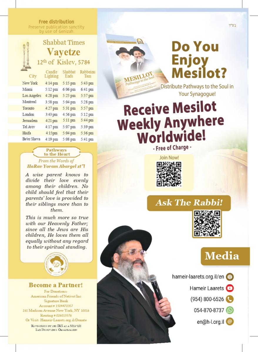 Rabbi Israel Abargel and Hameir Laarets work to spread Torah in Israel and around the world. Their activities include classes, lectures, and daily support and assistance to those in need. Hameir Laarets is a Torah Institute that deals with the publication and distribution of the works and teachings of Rabbi Yoram Michael Abargel zt”l. Hameir Laarets has already released over 50 books and more than 100,000 copies of our publication “Mesillot” are distributed free of charge every week. Our organization also provides daily support and assistance to those in need. Rabbi Yoram Michael Abergel, OB”M was the founder and head of Torah and Hessed institutions called Kol Rina Rav Phelim and Rav Phelim whose center is currently in Netivot . Over 4,000 Avrach scholars study in these institutions. He is the author of: - Bezur Yarom - his lessons on Sefer HaTanya, - Amri Noam - his lessons on the Parshiyot of the week and the festivals of Israel - Kol Rina - prayer arrangement and cycle series