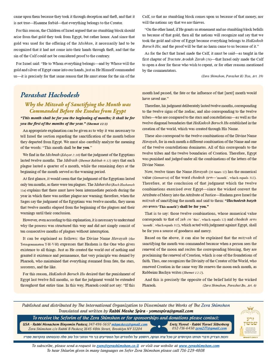 By Zera Shimshon Vayakhel