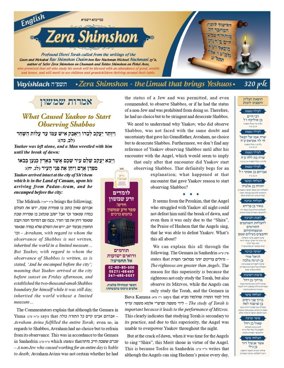By Zera Shimshon Vayishlach