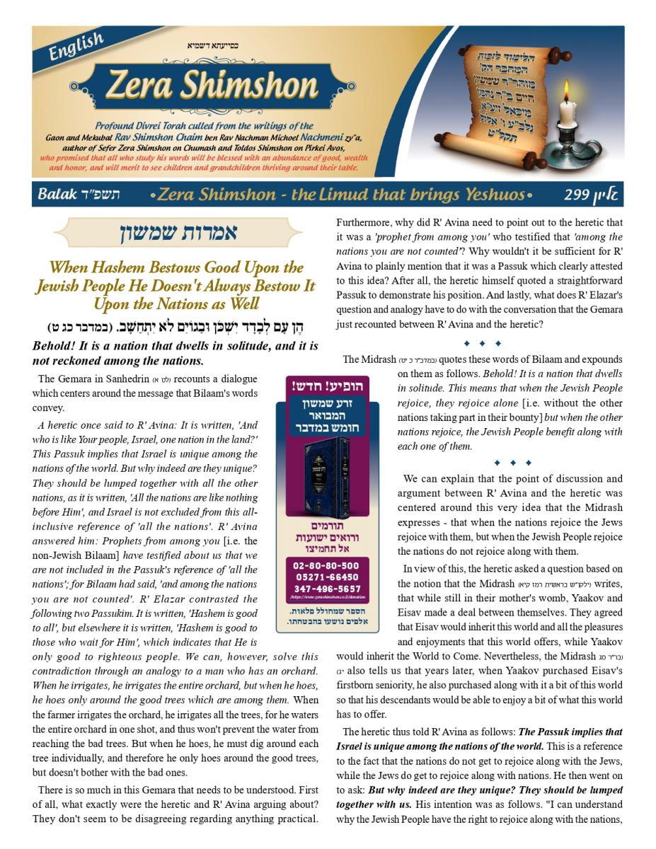 When Hashem Bestows Good Upon the Jewish People He Doesn't Always Bestow It Upon the Nations as Well