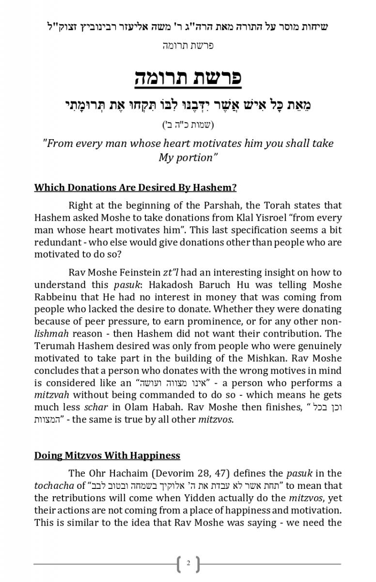 - Which Donations Are Desired By Hashem?