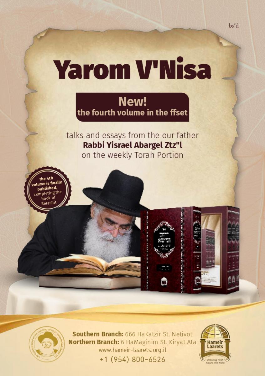Rabbi Israel Abargel and Hameir Laarets work to spread Torah in Israel and around the world. Their activities include classes, lectures, and daily support and assistance to those in need. Hameir Laarets is a Torah Institute that deals with the publication and distribution of the works and teachings of Rabbi Yoram Michael Abargel zt”l. Hameir Laarets has already released over 50 books and more than 100,000 copies of our publication “Mesillot” are distributed free of charge every week. Our organization also provides daily support and assistance to those in need. Rabbi Yoram Michael Abergel, OB”M was the founder and head of Torah and Hessed institutions called Kol Rina Rav Phelim and Rav Phelim whose center is currently in Netivot . Over 4,000 Avrach scholars study in these institutions. He is the author of: - Bezur Yarom - his lessons on Sefer HaTanya, - Amri Noam - his lessons on the Parshiyot of the week and the festivals of Israel - Kol Rina - prayer arrangement and cycle series