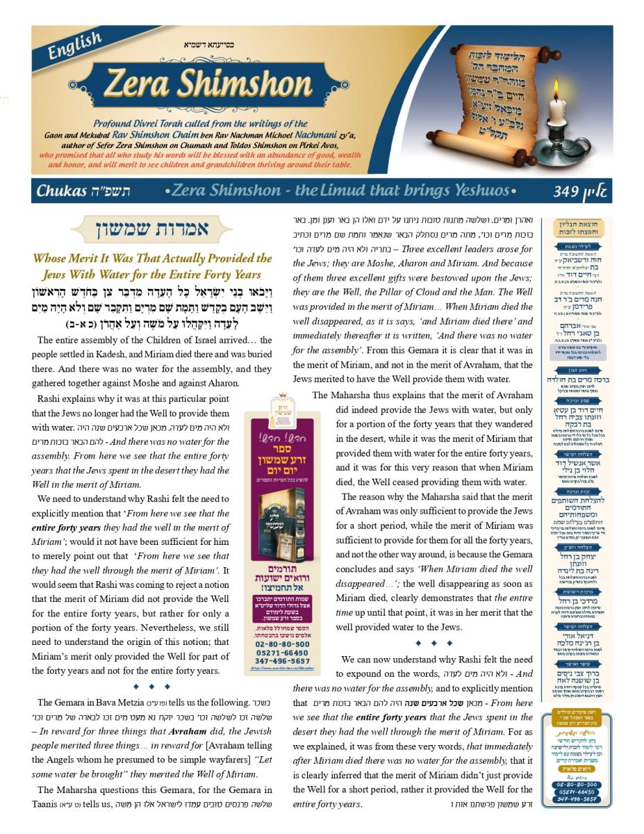 Whose Merit It Was That Actually Provided the Jews With Water for the Entire Forty Years