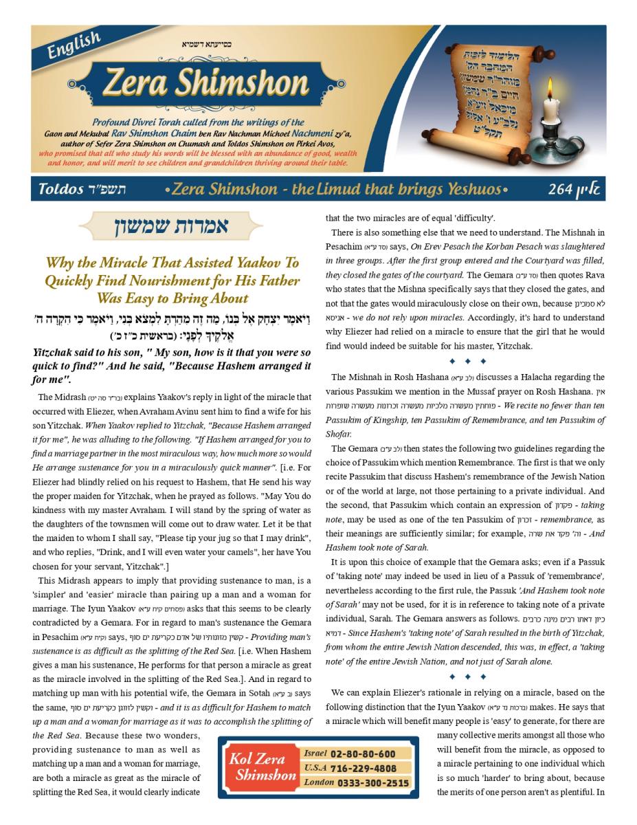 Why the Miracle That Assisted Yaakov To Quickly Find Nourishment for His Father Was Easy to Bring About