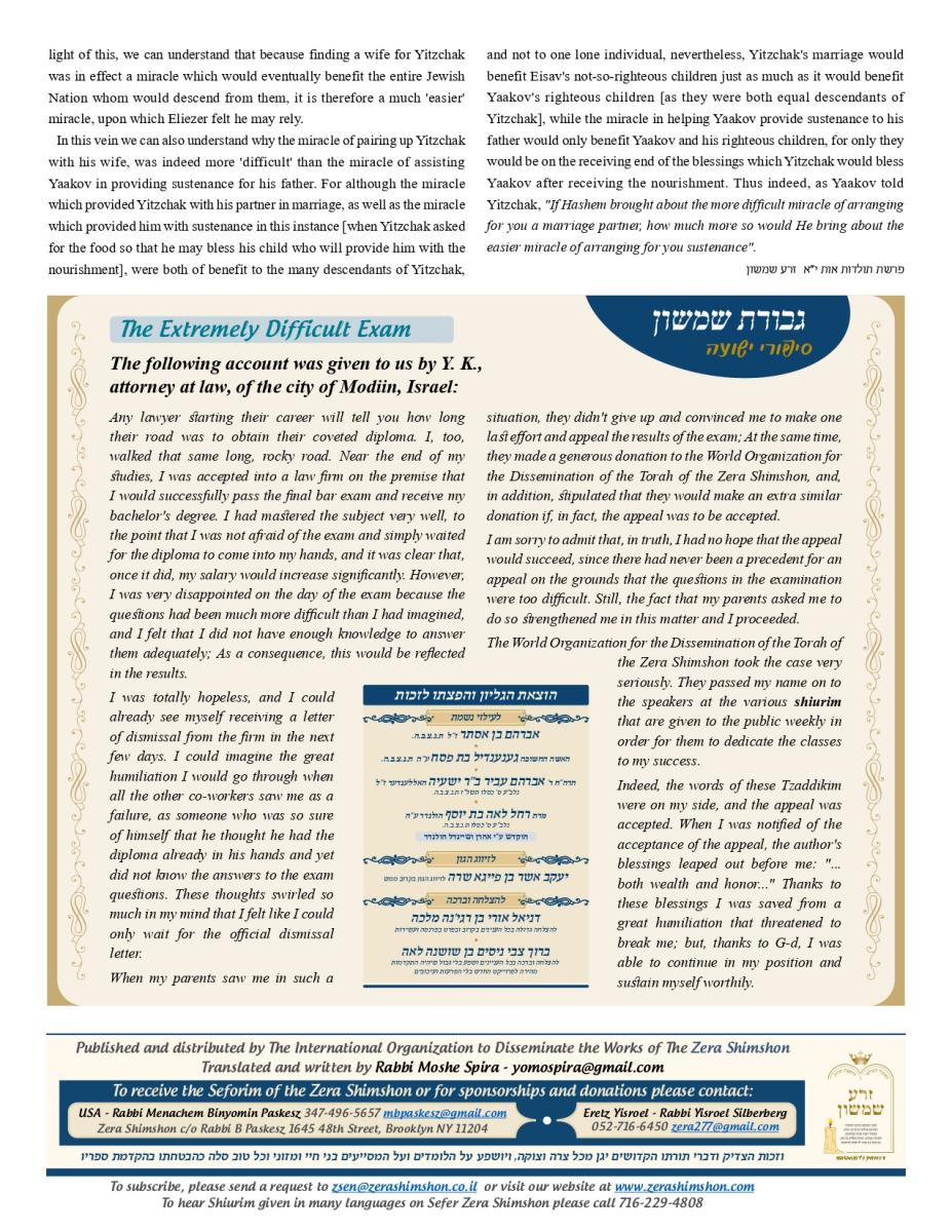 Zera Shimshon - Rabbi Shimshon Chaim ben Rabbi Nachman Michal Nachmani, was a Rabbi of four large communities throughout Italy and in his end of life in the city Reggio Emilia. Rabbi Shimshon Chaim 'Niftar' in the year 1779 in the city Reggio in Itlay. During his funeral, there were many words of praise, not just in his erudition of Torah, but on his love for the Jewish people. The communities in Italy and abroad considered Rabbi Shimshon Chaim their Rebby. Major Rabbis in his generation, wrote amazing things in his honor and wisdom. Including One of the outstanding rabbis figures the 'Hida' (Rabbi Haim Yosef David Azulai ben Rabbi Rephael Yitzhak Zerachia) had testify on Rabbi Shimshon Chaim praise in 'Kedushah' and wisdom and also knowledge in studying 'Kabala' and practical 'Kabala'. Rabbi Shimshon Chaim lived in 'Or ha-Ḥayyim' 'Hakadosh' (Rabbi Chaim ben Atar ben Rabbi Moshe) era, and was in friendship with him. Rabbi Shimshon Chaim had only one child, a son, who died at a young age. Upon this Rabbi Shimshon Chaim decided to dedicate his 'Sefarim' to the memory of this child who had no continuity of a family. In the beginning of his book Rabbi Shimshon Chaim wrote that he need to leave some memory in this world because he has no continuity. And that’s why he wrote the book and named it: "Zera Shimshon", means the Seed of Shimshon. Rabbi Shimshon Chaim publish the book one year before he died. Rabbi Shimshon Chaim placed a lot of his energy, during his lifetime that people should learn from his ''Sefarim''. Rabbi Shimshon Chaim also emphasized, that after his 'Neshama', will leave this world that people should continue to learn from his ''Sefarim''. What is most unusual for a Tzadik of this stature, was that he made a promise. That promise is that anyone that takes upon himself to learn from his writing, he promises "children, praise, health, 'Parnasa', wealth, honor".
